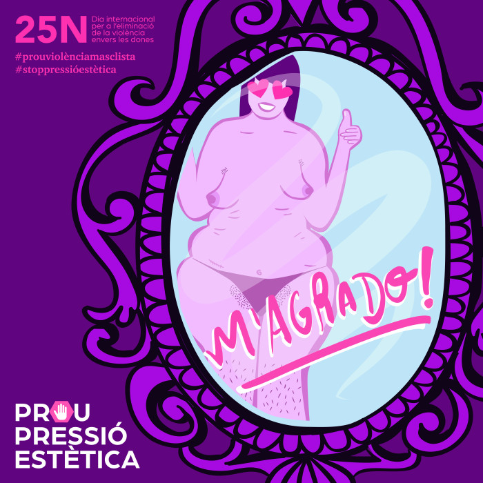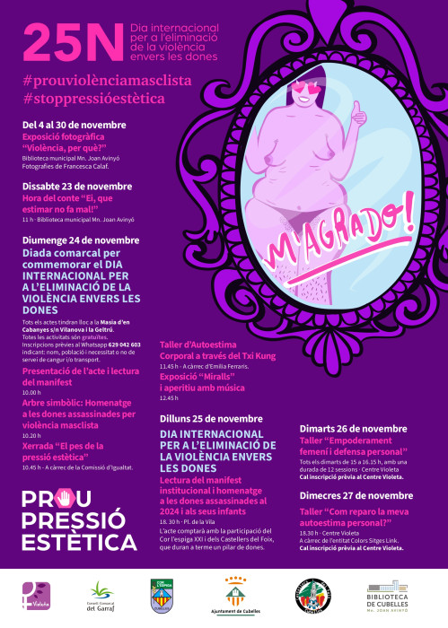 La imatge gràfica del 25N d'aquest any gira entorn de la pressió estètica i altres violències exercides contra els cossos de les dones, difonent una mirada positiva sobre el propi cos. La guanyadora del concurs per seleccionar el cartell d'aquest any ha estat la dissenyadora cubellenca Xuria García Ruiz. Aquest concurs té per objectiu sensibilitzar a la ciutadania sobre igualtat i diversitat de gènere, discriminacions i construcció de relacions socials igualitàries d’acció contra la violència masclista i de reconeixement del lideratge i la participació de les dones, i s'emmarca dins del III Pla d'igualtat de gènere i diversitat del Consell Comarcal del Garraf i els Ajuntaments de Cubelles, Canyelles i Olivella.