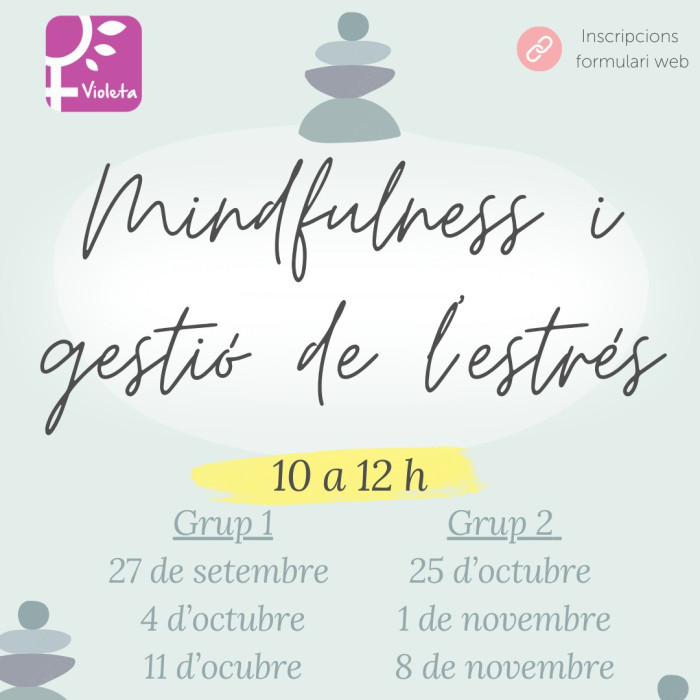 Comença una nova edició del taller Mindfullness i Gestió de l'Estrés per a dones al Centre Violeta en dissabte al matí dividit en dos grups de la manera següent: