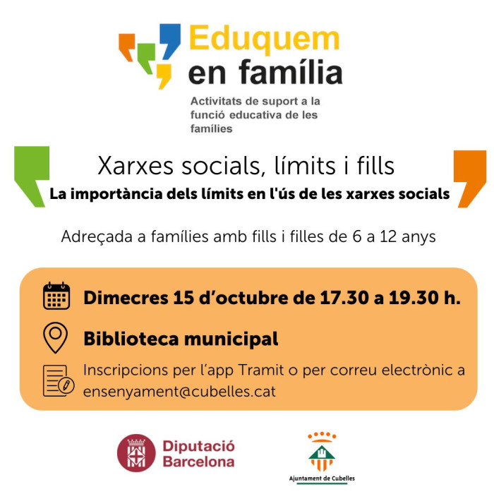 Inscripcions APP TRAMIT o per correu electrònic a ensenyament@cubelles.cat
