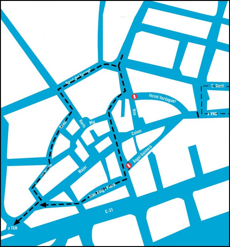 La regidoria d’Obres i Serveis informa que durant les properes setmanes estarà tallat totalment el trànsit del carrer Àngel Guimerà (entre Pg. Narcís Bardají i Sant Antoni) com a conseqüència de les obres de rehabilitació del nucli antic. A més, entre els dies 22 i 29 de novembre, es tallarà el carrer Jacint Verdaguer. Per permetre als vehicles dirigir-se cap a Vilanova, la plaça Jaume Marsé serà en direcció al carrer de Sant Antoni durant aquest període.