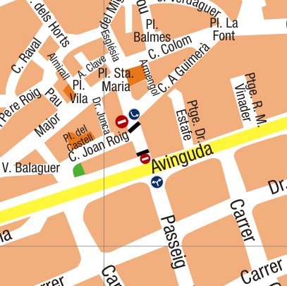 Els vehicles que baixin pel Pg. Narcís Bardají seran desviats per Àngel Guimerà, mentre que els que venen per sota de la C-31 (Av. Catalunya), a l’alçada del semàfor de la travessia, hauran d’anar direcció Barcelona o direcció Tarragona.