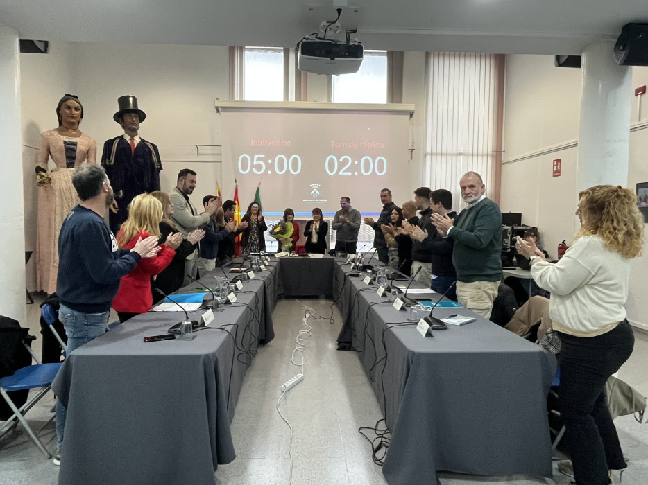 Entre els aplaudiments de tots els regidors i les regidores del plenari, la Secretària ha rebut un ram de flors de part de la Corporació.