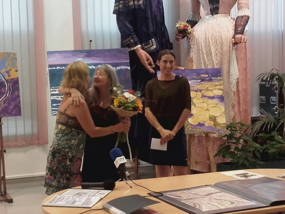 La presentació de l’exposició va anar a càrrec de la regidora de Cultura, Ester Pérez, que de manera breu va introduir a l’artista i va deixar pas a les paraules d’una emocionada Josselyne Marmottan. Finalment, va recollir el micròfon l’alcaldessa Rosa Fonoll, que va aprofitar per recordar alguns lligams de Marmottan amb la vida cultural de Cubelles, abans de lliurar un obsequi institucional a la pintora.
