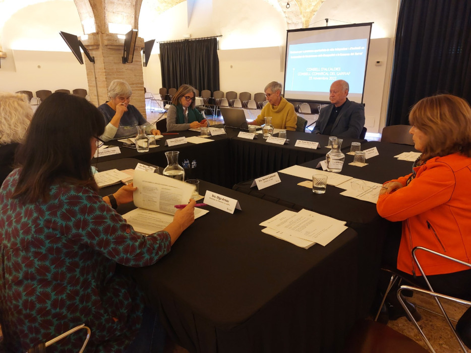 La reunió va comptar amb la participació de les alcaldesses dels sis municipis i de la presidenta del Consell Comarcal del Garraf, i es va iniciar amb la intervenció de Margarida Saiz, Teresa García i Antoni Reverte, portaveus del Moviment per promoure oportunitats de vida independent de les persones amb discapacitat a la comarca del Garraf, que van compartir algunes demandes en l’àmbit municipal i comarcal relacionades amb el greuge econòmic comparatiu, l’accés a l’habitatge, la inserció laboral, els serveis de suport a la vida independent, el servei d’assistència personal, entre d’altres.