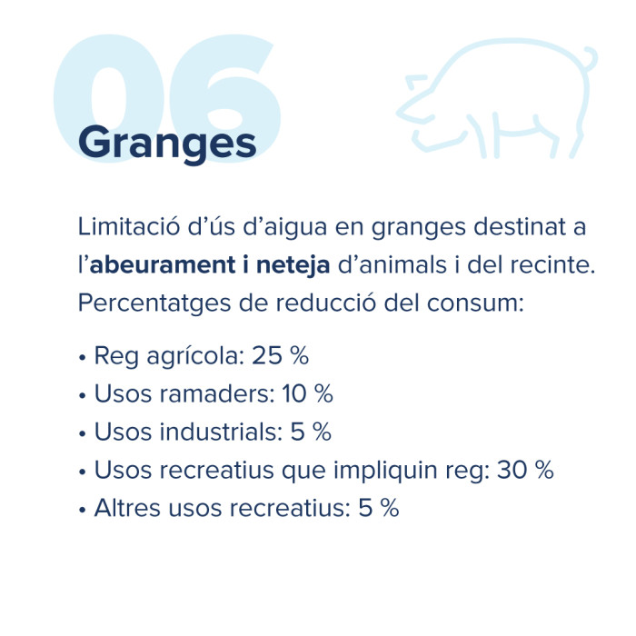 La resta d'usos hauran de reduir els seus consums en funció del tipus, tal com es detalla a continuació: