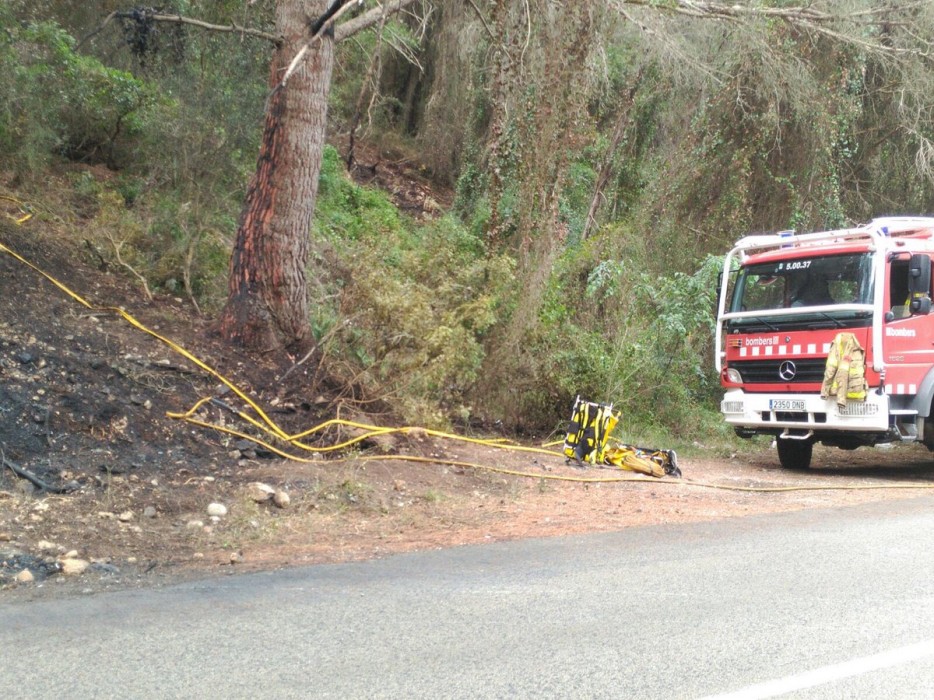 Un vehicle va sortir de la via i va originar un foc ràpidament atacat per més d’una dotzena de dotacions dels bombers