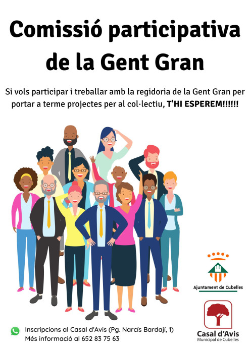 La regidoria de la Gent Gran fa una crida a les persones jubilades i pensionistes a formar part de la Comissió participativa de la Gent Gran. Es tracta d'un espai de treball col·laboratiu que es reunirà cada dos mesos de forma ordinària, però que té previst reunir-se cada cop que sigui necessari.