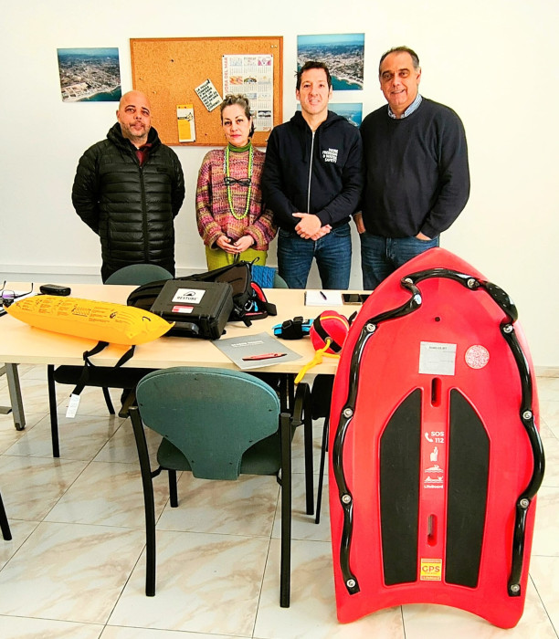 El regidor de Salut, Josep Maria Hugué, i el regidor de Medi Ambient, Àlex Noheda, acompanyats per Eva Escardó, tècnica municipal de Medi Ambient, s’han reunit amb Ramsés Martí, instructor en rescat aquàtic, per conèixer de primera mà les últimes novetats en tecnologies de salvament per aplicar al servei de socorrisme de les platges.