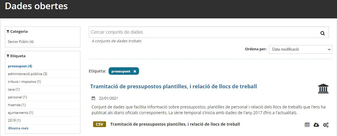 La regidoria de Transparència publica un paquet de dades obertes sobre gestió econòmica, acció de govern i catàleg de serveis