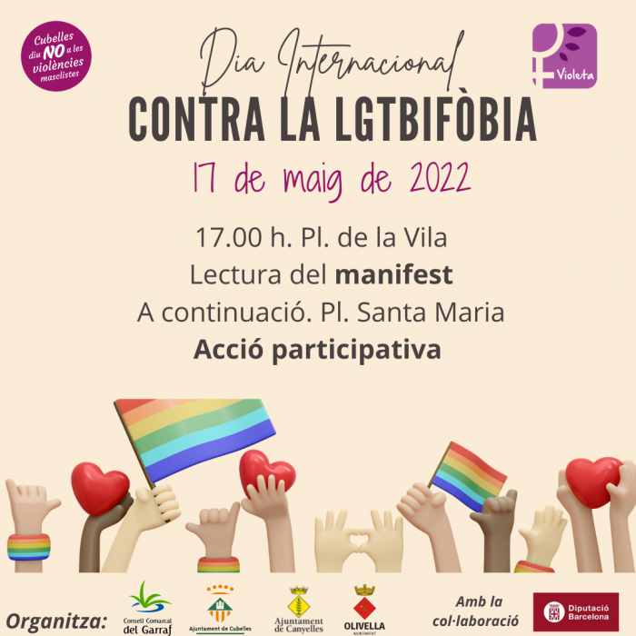 La regidoria de Polítiques d’Igualtat ja té a punt el programa d’actes per commemorar el 17 de maig dia internacional contra LGTBIfòbia. Tot i que els actes se celebraran el mateix dia, el centre Violeta inicia ja les accions relacionades amb aquesta diada reivindicativa.