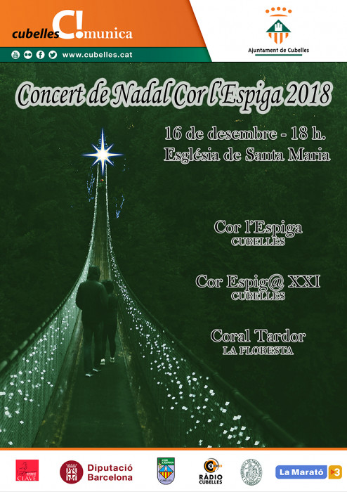 El Cor l’Espiga i l’Espig@ XXI seran els amfitrions, un any més, del tradicional concert de Nadal, inclòs dins dels actes de la Fira de Nadal de Cubelles. I com ve essent habitual en les darreres edicions, la coincidència amb La Marató de TV3 s’aprofitarà per dedicar la jornada a la recapta solidària en favor de la investigació del càncer que fa la televisió pública de Catalunya.