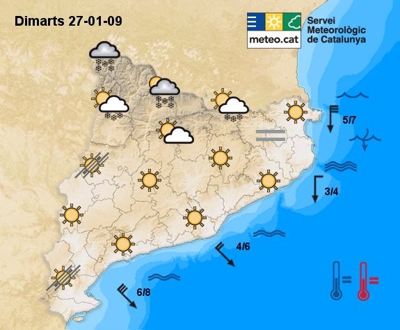 El Centre de Coordinació Operativa de Catalunya, CECAT, va rebre diumenge a la tarda l'actualització de la Situació Meteorològica de Risc per Vents facilitada pel Servei Meteorològic de Catalunya i manté per avui la fase d'alerta del Pla de Protecció Civil de Catalunya (PROCICAT) per forts vents.
