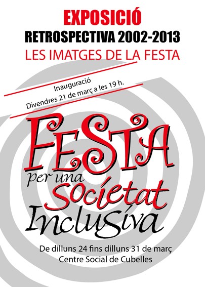 La mostra fotogràfica “Les imatges de la festa” és una retrospectiva dels 10 anys de la Festa per una societat inclusiva al Garraf, del 2002 al 2013. Amb aquesta activitat es dóna el tret de sortida a les activitats que s’emmarquen al voltant de la Festa per una societat inclusiva, que tindrà lloc a Cubelles el 10 de maig.