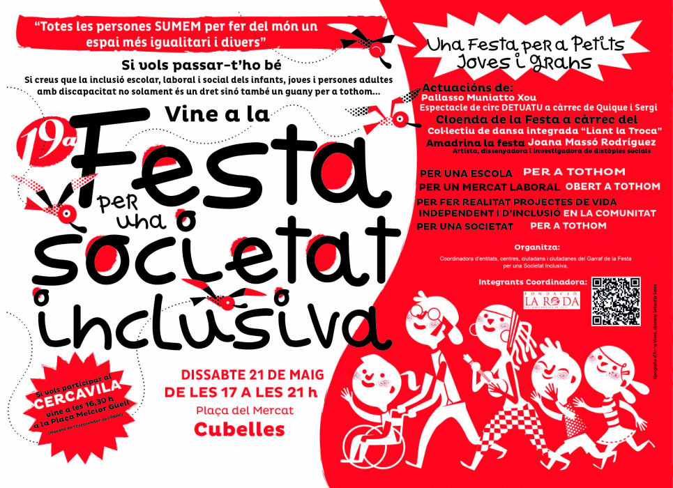 Cubelles serà la seu de la 19a edició de la Festa per una societat inclusiva, que organitza la Coordinadora d’entitats, centres, ciutadans del Garraf que impulsa aquesta celebració. Després de dos anys en què no s’ha pogut celebrar per la pandèmia, la plaça del Mercat acollirà la commemoració, apadrinada per la Joana Massó, que pretén donar visibilitat a la inclusiu d’infants, joves i adults.