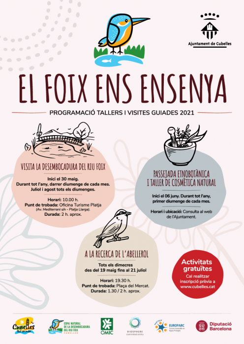 La regidoria de Turisme ha programat, un any més, tota una sèrie de sortides i tallers al voltant de la riquesa que ens ofereix el seu riu Foix, a la seva desembocadura al Mediterrani a Cubelles. Sota el El Foix ens ensenya s’ha programat una sèrie d’activitats adreçades a tot tipus de públic per promoure un turisme sostenible.