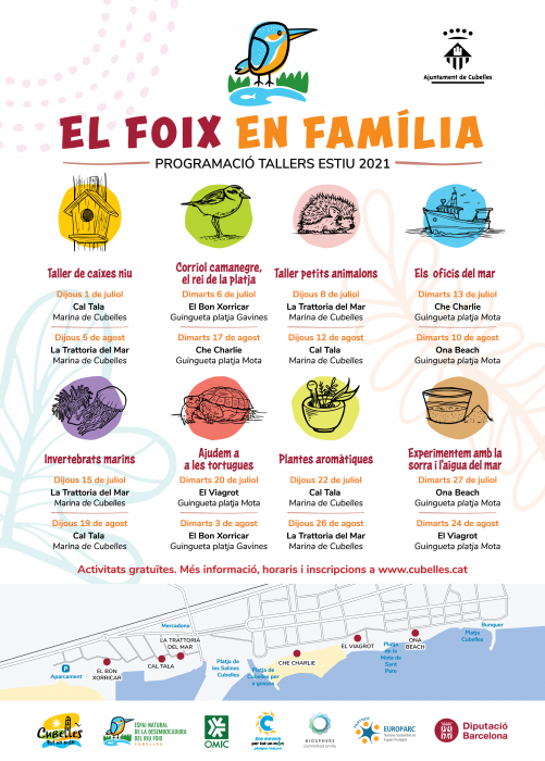 Dins d’aquestes activitats, Turisme de Cubelles ha introduït enguany la novetat dels tallers de cosmètica natural i tallers adreçats a infants, sota el lema El Foix en família. Totes les activitats són amb inscripció prèvia, grups limitats i es realitzaran per tot el municipi durant tot l’estiu.