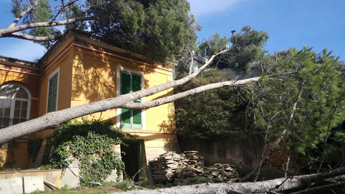 A Can Travé, la forta ventada també ha causats estralls, si bé no s'han produït desperfectes materials irreparables. Dos pins de gran alçada s'han dessarrelat i un d'ells ha quedat penjat sobre l'estructura de l'antiga Biblioteca de Mitologia clàssica.