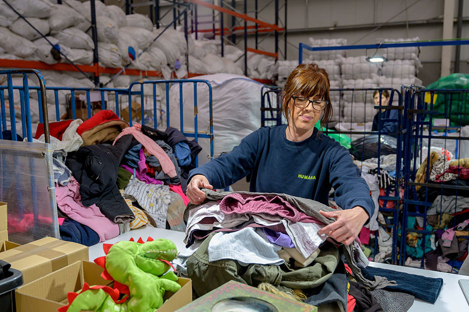 La gestió del residu tèxtil té dos grans beneficis socials: el primer és la generació d'ocupació verda i la contribució a l'economia social, ja que fomenta la creació de llocs de treball inclusius, estables i de qualitat: Humana compta amb una plantilla en augment gràcies a que genera una ocupació indefinida per cada 36.000 kg de tèxtil recollit.