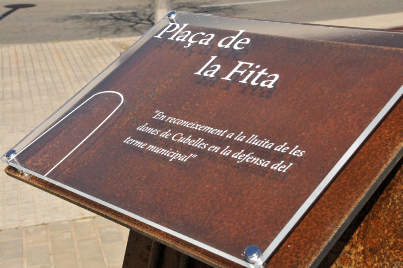 Tot seguit, la comitiva va creuar l’avinguda del Terme i es va dirigir a la recentment renombrada plaça de la Fita. La unanimitat del Consistori en el ple municipal va aprovar la denominació d’aquest espai com a plaça de la Fita, recordant l’efemèride que va dur a un grup de dones de Cubelles a enderrocar la fita de terme situada davant l’ermita de sant Antoni i erigint-ne una de nova en la seva ubicació actual, delimitant el terme municipal que separa Cubelles de Vilanova i la Geltrú.