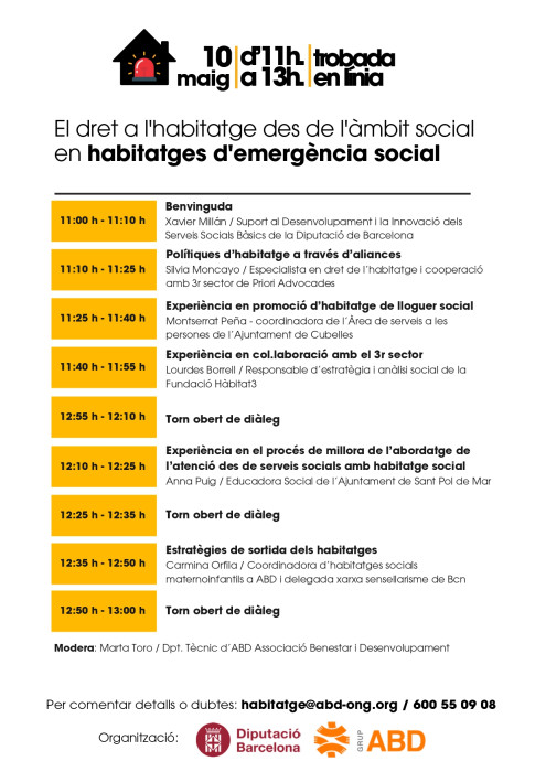 La jornada, pensada per servir de revulsiu i ajuda als municipis que volen impulsar accions enfocades per facilitar l’accés de la ciutadania en situació de vulnerabilitat a l’habitatge, presentava exemples d’iniciatives en l’àmbit social per part de diferents entitats i administracions i, finalment, un espai de debat obert al final per tal de compartir idees i obrir el diàleg.