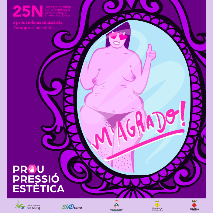 Com en anys anteriors, el cartell guanyador es farà servir com a imatge de la programació d’activitats organitzades pel Consell Comarcal del Garraf amb motiu del Dia Internacional per a l'Eliminació de la Violència envers les Dones. Les celebració d’aquesta diada enguany es realitzarà el diumenge 24 de novembre, a la Masia d'en Cabanyes. L'acte s'iniciarà a les 9.45 h. amb l'entrega del premi del concurs de cartell del 25N, seguidament es llegirà el manifest i posteriorment s'ofereixen tallers per identificar la violència de la pressió estètica i la cura del nostre cos. Al final del matí s’oferirà un vermut als jardins. Totes les activitats són gratuïtes però cal fer inscripció prèvia al whatsapp 683136803.