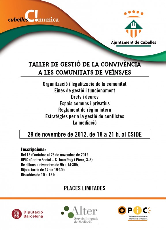 L’Oficina de Participació i Informació Ciutadana (OPIC) aposta per la formació per a entitats i associacions del municipi a través de l’oferta de dos tallers per al mes de novembre. Es tracta d’una formació per gestionar la convivència a les comunitats de veïns i un segon taller d’organització i funcionament de les associacions.