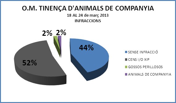 La campanya de control de l’Ordenança Municipal (OM) de tinença d’animals de companyia efectuada per la Policia Local entre el 18 i 24 de març s’ha saldat amb un 56% d’infraccions.