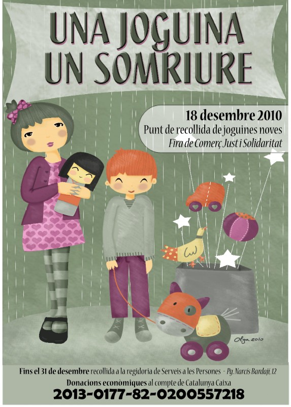 La regidoria de Serveis a les Persones ja té enllestida la campanya de recollida de joguines solidàries ‘Una joguina, un somriure’. A més de recollir joguines noves fins el 31 de desembre a les oficines de la regidoria (Pg. Narcís Bardají, 12), aquesta va tenir una parada a la Fira de Solidaritat i Comerç Just.