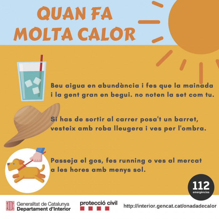 Davant el fet que les onades de calor i els episodis de calor extrema són cada cop més freqüents, les professionals de salut comunitària del CAP Cubelles explicaran consells per prevenir els efectes negatius d'aquestes i com protegir-se. Fins al 30 de setembre està activat el pla contra les onades de calor (POC), del qual disposen de més informació fent clic aquí.