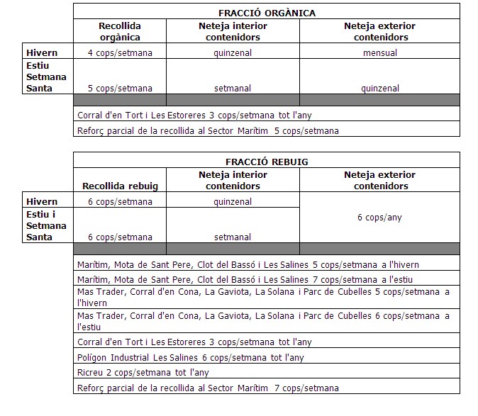 L’Ajuntament fa públic l’horari de la Deixalleria municipal i la nova freqüència de recollida de la brossa (fracció orgànica i rebuig) que estan vigents des de l’1 de juliol.