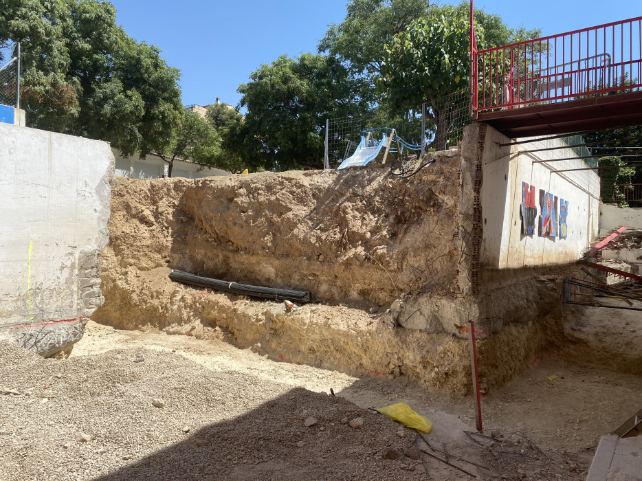 Així, els tècnics municipals van refer el projecte amb els nous càlculs estructurals i van realitzar una contractació d’urgència. Aquesta obra, que permetrà disposar d’una escala totalment segura i que compleixi la normativa vigent necessita de la instal·lació prèvia d’un mur de contenció que té un forjat que necessita un mes per assentar-se abans de poder posar-hi càrrega al damunt.