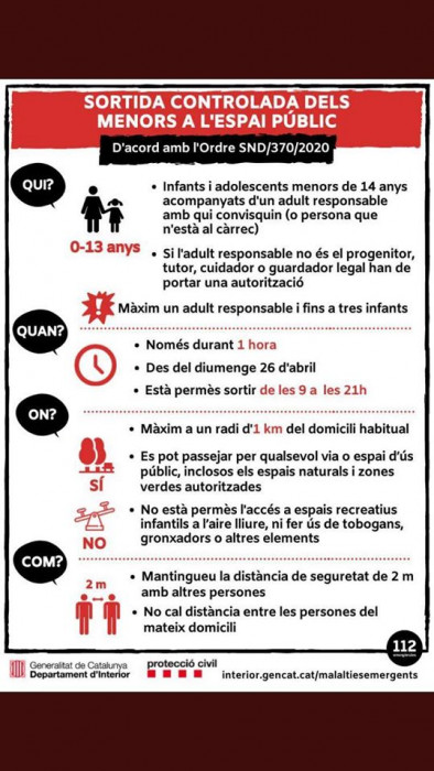 Així mateix, es demana responsabilitat en la sortida al carrer dels infants i que es compleixin amb totes les mesures i recomanacions dictades per la Generalitat i el govern de l'Estat.