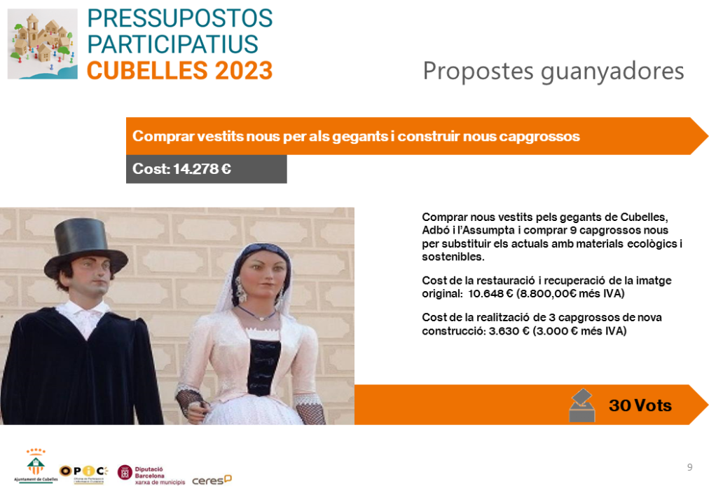 Aquesta edició ha estat la primera en gestionar-se de forma integral des de la plataforma participa311-cubelles. Aquest fet, precisament, podria ser la resposta a la disminució del 80% de la participació respecte als pressupostos del 2022, en que hi van prendre 661 persones.