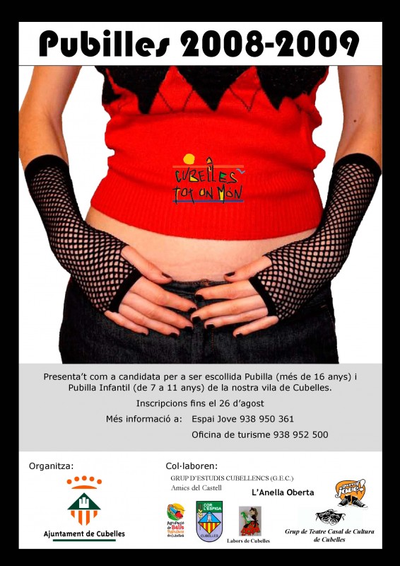 La regidoria d’Infància i Joventut informa que les inscripcions per a l’elecció de Pubilla Infantil i Pubilla de Cubelles 2008 s'han ampliat fins el 5 de setembre, a l’Espai Jove, ubicat al Centre Social de Cubelles (C. Joan Roig i Piera, 3-5). Les inscripcions són gratuïtes i la valoració de les candidates tindrà lloc el mateix 5 de setembre.