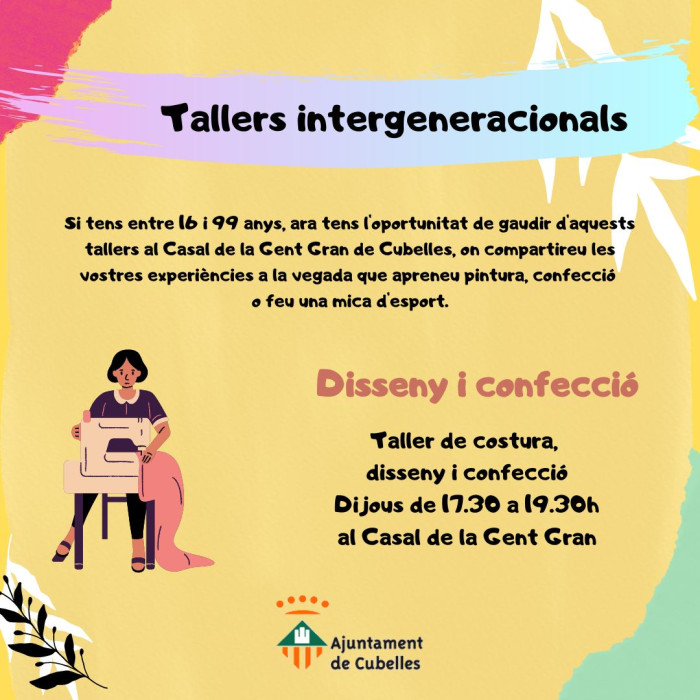 La regidoria de la Gent Gran fa una crida a persones entre 16 a 39 anys i 40 i 59 anys perquè s'apuntin als tallers intergeneracionals. Es tracta d'una prova pilot adreçada a col·lectius de diferents edats de tota la població per tal que comparteixin activitats, es retro alimentin i posin en comú experiències i coneixements. De moment les activitats estan programades per a tot el primer trimestre del proper any 2023, però si la proposta agrada, i té demanda, la regidoria es planteja allargar-la.