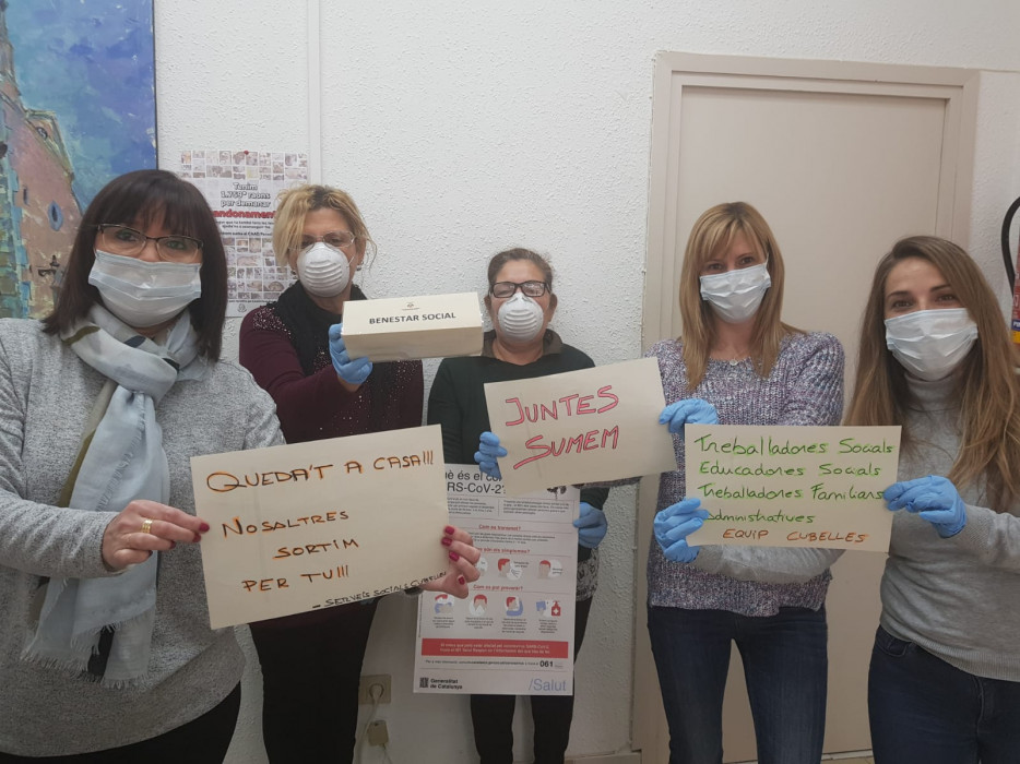 Els Serveis Socials de l'Ajuntament de Cubelles, que compta amb el personal tècnic del Consell Comarcal del Garraf i l'administratiu del propi consistori, va posar en marxa en només 48 hores des de la declaració de l'estat d'alarma un servei d'acompanyament a les persones grans sense xarxa de suport familiar que en la seva primera setmana ja atenia a 40 persones, coordinat per la conserge de l'escola Mar i Cel, que s'encarrega de coordinar les peticions de les persones necessitades amb la resta de serveis municipals. Però aquesta no és la única feina en la que participa aquell personal municipal que per les característiques del seu lloc no poden ni teletreballar ni fer la seva feina habitual de forma presencial. El personal de consergeria de les escola Charlie Rivel, Vora del Mar i dels equipaments municipals, com el Casal d'Avis i el Centre Social, s'han sumat al servei de suport emocional a les persones que se senten soles i que, fins al moment, ja ha arribat a la pràctica totalitat de majors de 75 anys i seguirà fins a completar a totes les persones més grans de 65, per detectar possibles necessitats.