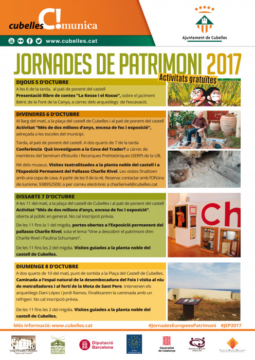 La ponència inaugural es farà al pati de ponent del castell, el dia 6, a les 18.30 h. Membres del departament d’Història i Arqueologia, el Seminari d’Estudis i Recerques Prehistòriques (SERP) i de la Facultat de Geografia i Història de la Universitat de Barcelona oferiran la conferència Què investiguem a la Cova del Trader. Aquesta conferència versa sobre un treball de recuperació històrica de les excavacions arqueològiques dutes a terme a la zona del Penedès i el Garraf, que va fer que es tornessin a estudiar els materials antics de la Cova del Trader i que s’executés una petita excavació per comprovar-ne l’estat de conservació. Els resultats preliminars apunten que la cova pot ser un jaciment cabdal per comprendre millor l’extinció dels neandertals i l’arribada dels primers homo sàpiens a la zona. Un altre dels actes principals d’aquestes jornades arribarà la nit del divendres 6, amb les visites guiades a la planta noble del castell. Per fer reserves o consultar horaris, es recomana contactar amb l’Oficina de Turisme (93 895 25 00).