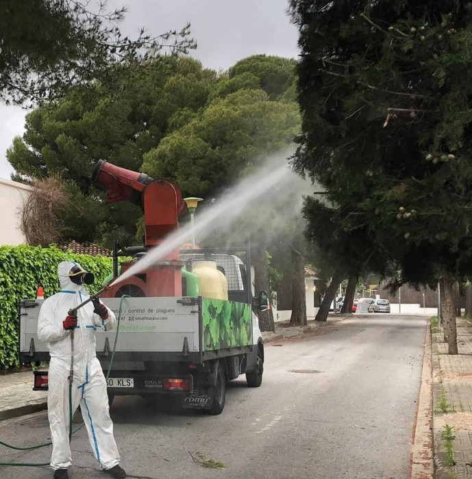 Mitjançant un sistema de polvorització, s’utilitzarà Saditrina (cipermetrin 0,35%) i s'aplica diluït de manera que no suposa cap risc per a la salut de les persones ni dels animals domèstics.