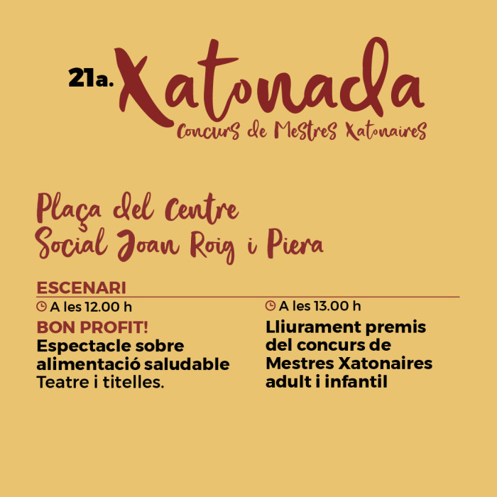 El tradicional concurs de fer xató arriba enguany a la 21a edició. Els inscrits gratuïtament a l’oficina de Turisme rebran d’obsequi un davantal fet a mà per l’ONG Balukunda i un plat commemoratiu. Els premiats rebran vals de compra a les botigues associades al Comerç de Cubelles.