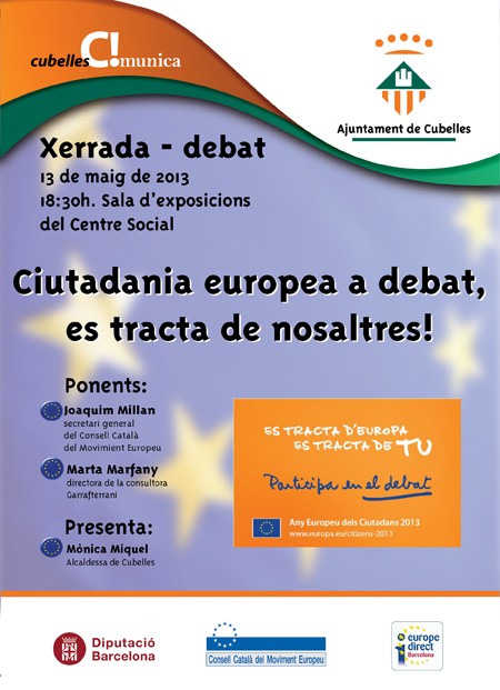 Es tracta d’un acte emmarcat dins de la XIII Setmana d’Europa als municipis de Catalunya, que promou el Consell Català del Moviment Europeu per implicar la ciutadania en el futur de la Unió Europea, aprofitant la celebració de l'Any Europeu de la Ciutadania i les properes eleccions al Parlament Europeu el maig del 2014. L’acte institucional central d’aquest programa tindrà lloc el 9 de maig a les 19,30 h. al Saló de Cent de l’Ajuntament de Barcelona, amb el XIX Concert del Dia d’Europa.